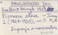 PAWLIKOWSKI Jan Gwalbert Henryk 1929... Pierwsze słowa.