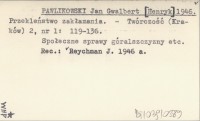 PAWLIKOWSKI Jan Gwalbert Henryk 1945 Najważniejsza praca.