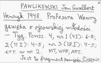 PAWLIKOWSKI Jan Gwalbert Henryk 1948 Profesora Wawry gawęda o ojcowskiej młodości.