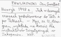 PAWLIKOWSKI Jan Gwalbert Henryk 1948 b Zbójnictwo tatrzańskie.