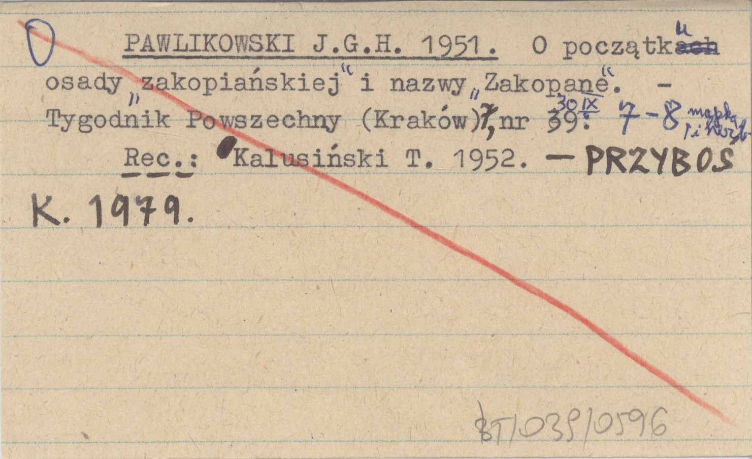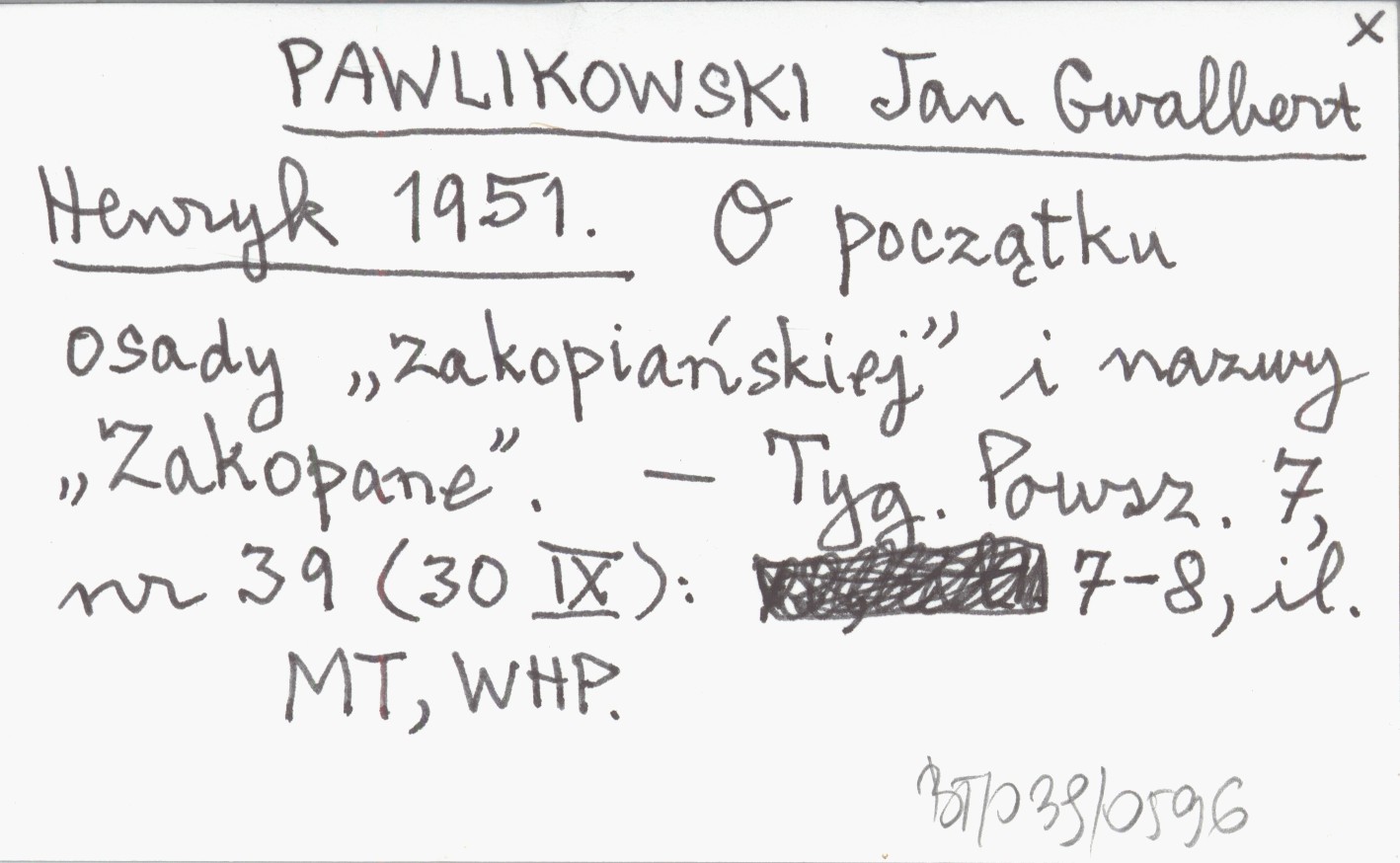 PAWLIKOWSKI J. G. H. 1951 O początku osady "zakopiańskiej" i nazwy "Zakopane".