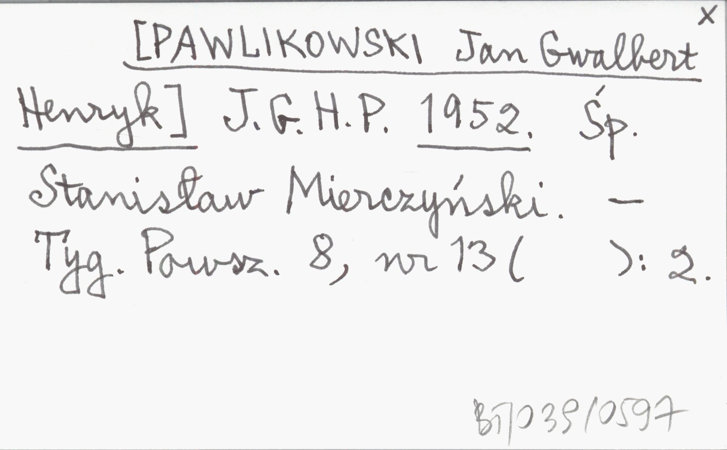 J. G. H. P. [PAWLIKOWSKI Jan Gwalbert Henryk] 1952 Śp. Stanisław Mierczyński.