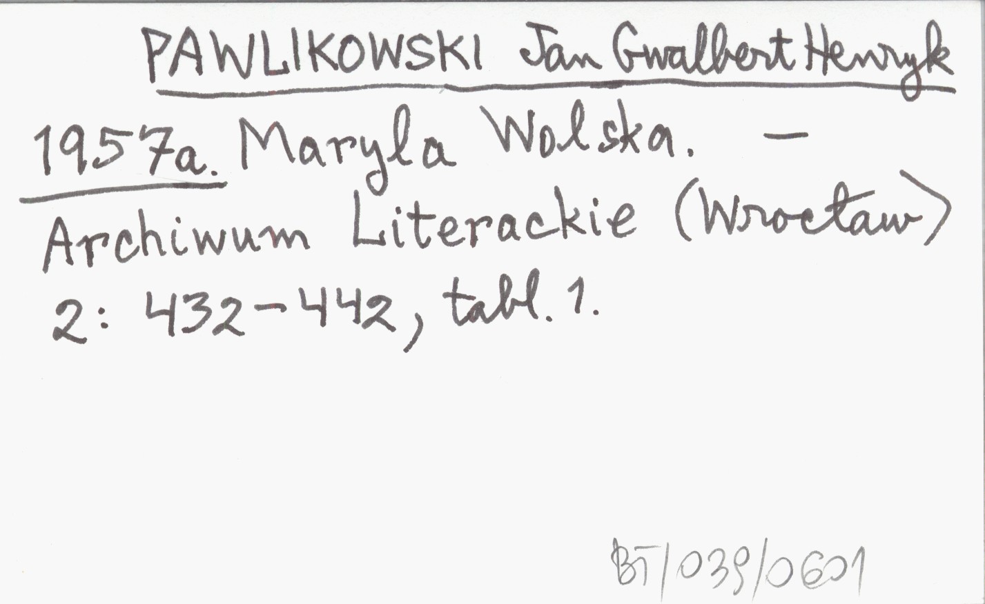 PAWLIKOWSKI Jan Gwalbert Henryk 1957 a Maryla Wolska.