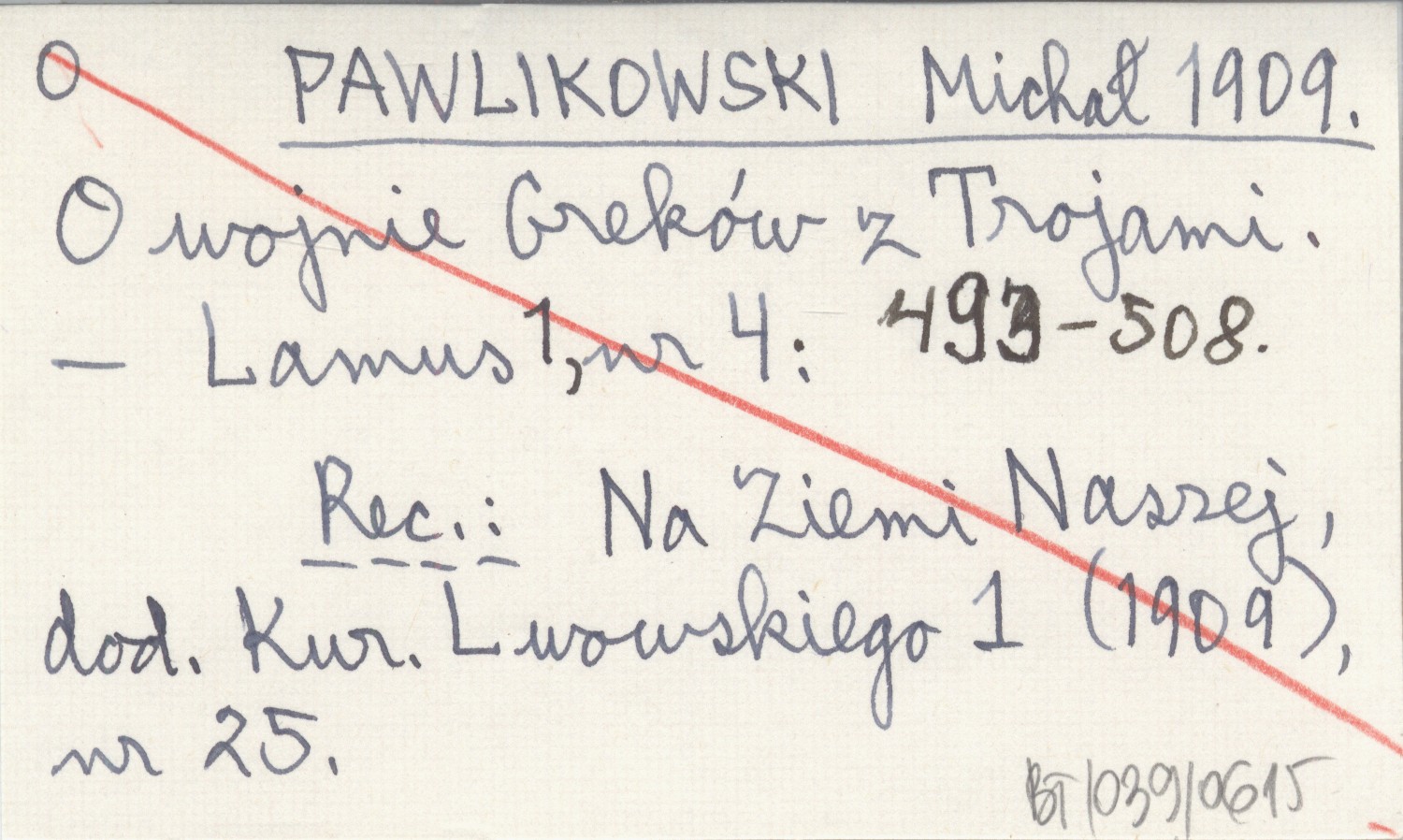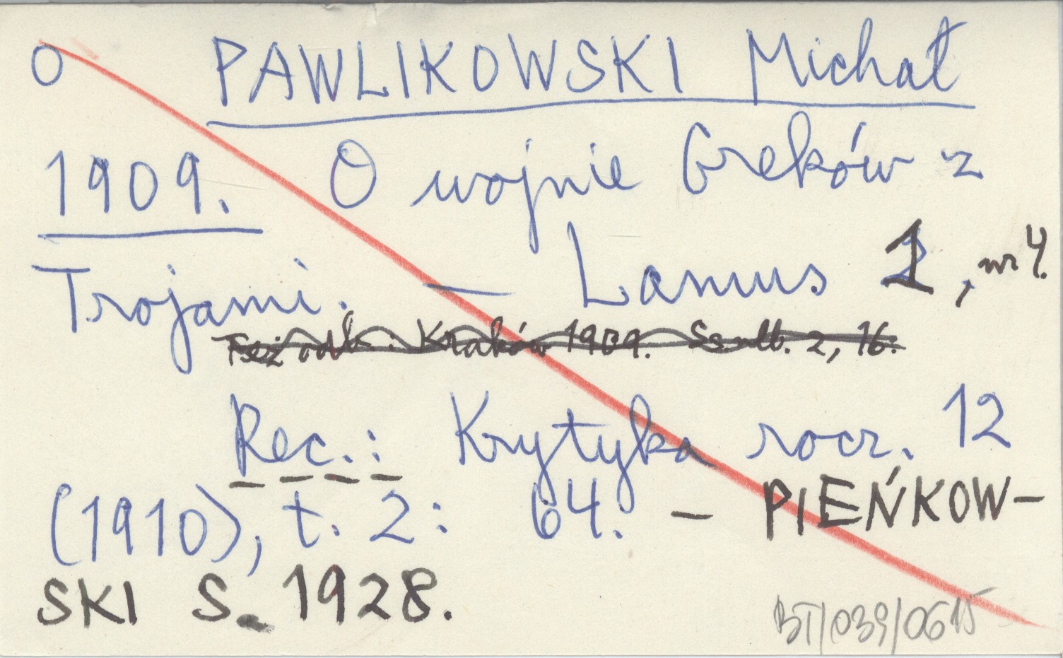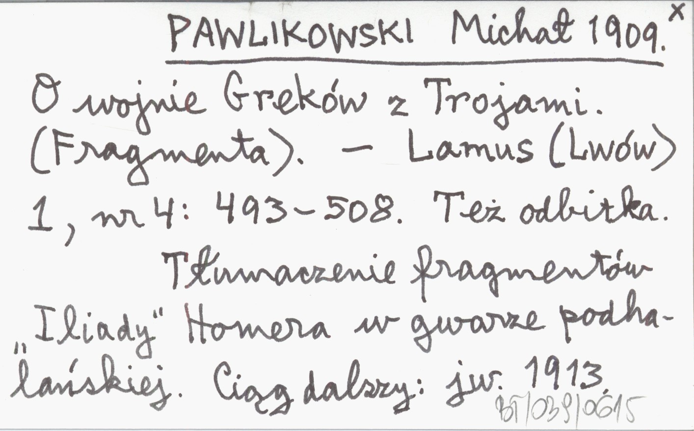 PAWLIKOWSKI Michał 1909 O wojnie Greków z Trojami. (Fragmenta).