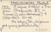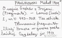 PAWLIKOWSKI Michał 1913 O wojnie Greków z Trojami. (Fragmenta. II).