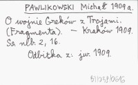 PAWLIKOWSKI Michał 1909 a O wojnie Greków z Trojami. (Fragmenta).