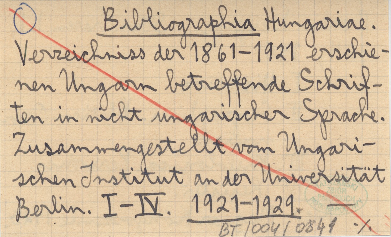 Bibliographia Hungariae. Verzeichniss der 1861-1921 erschienen Ungarn betreffende Schriften in nicht ungarischer Sprache. Zusammengestellt vom Ungarischen Institut an der Universität Berlin. I-IV. 1921-1929