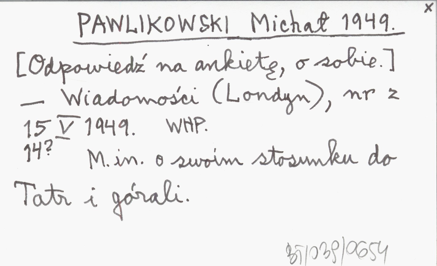 PAWLIKOWSKI Michał 1949 [Odpowiedź na ankietę, o sobie.]