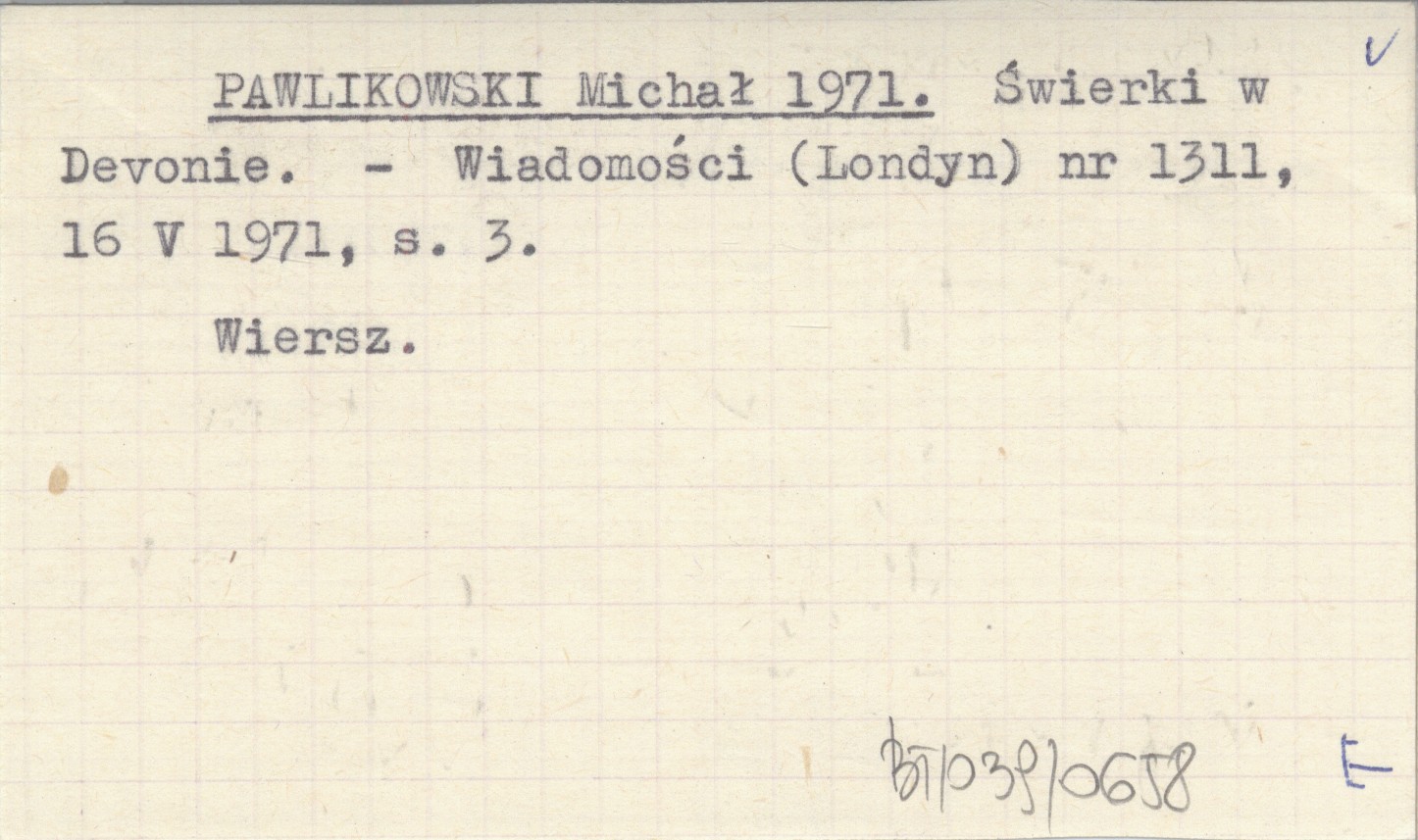 Wiadomości (Londyn) , Nr 1311 (16 V 1971): 3. Wiersz.