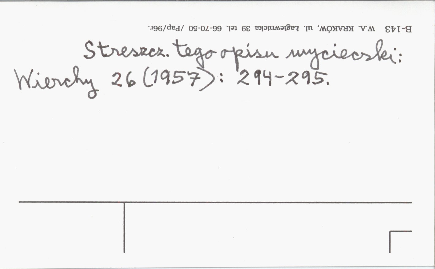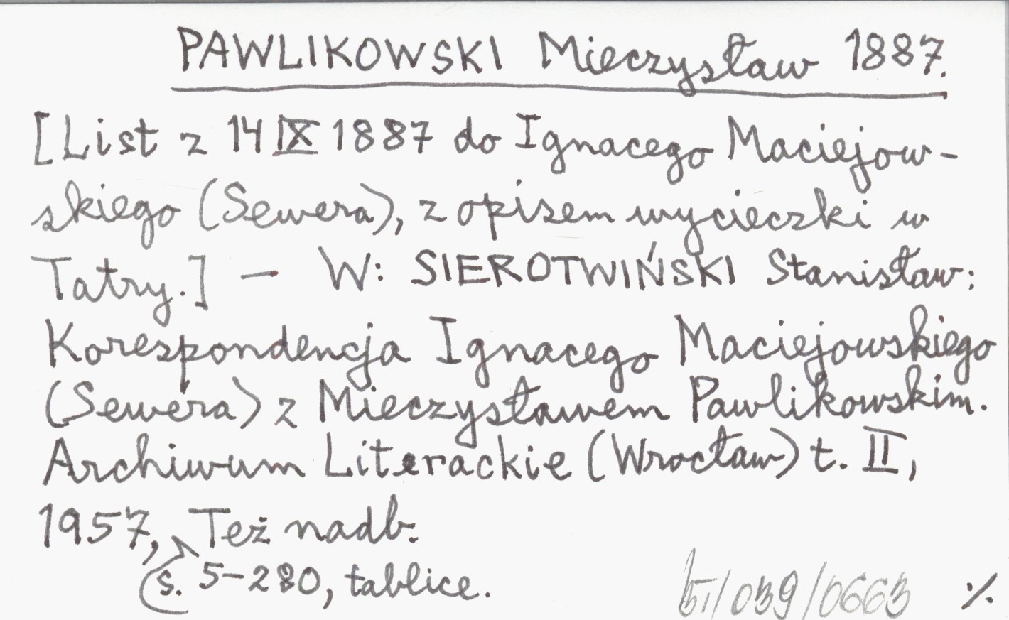SIEROTWIŃSKI Stanisław: Korespondencja Ignacego Maciejowskiego (Sewera) z Mieczysławem Pawlikowski. Archiwum Literackie (Wrocław) , T. II, 1957: 5-280, k. Streszczenie tego opisu wycieczki: Wierchy 26 (1957): 294-295.