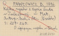 PAWŁOWICZ B. 1896 Kulka rysów z życia ludu w Zalasowej.