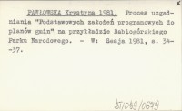 PAWŁOWSKA Krystyna 1981 Proces uzgadniania "Podstawowych założeń programowych do planów gmin" na przykładzie Babiogórskiego Parku Narodowego.