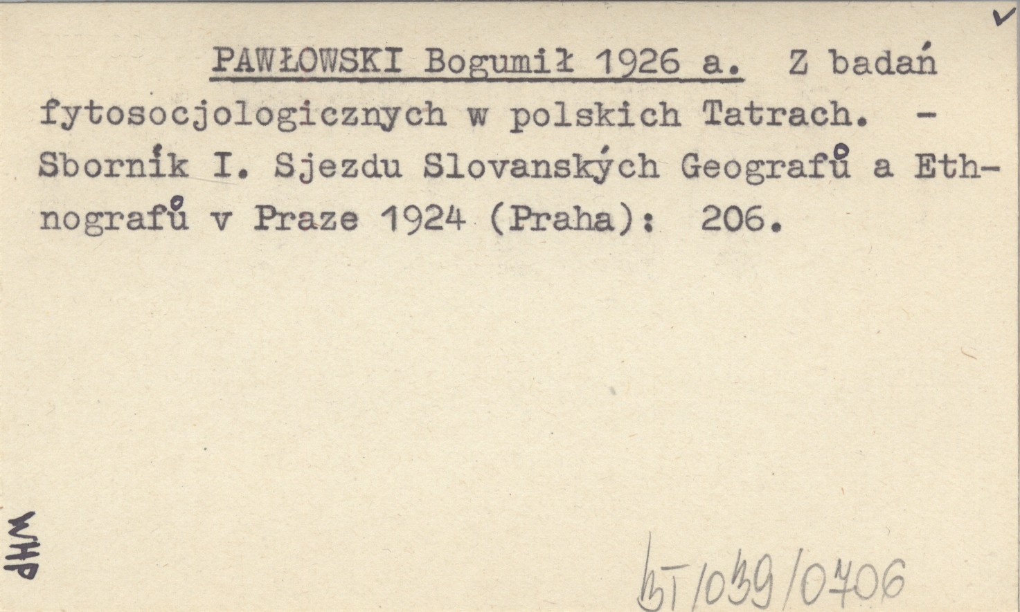 PAWŁOWSKI Bogumił 1926 a Z badań fotosocjologicznych w polskich Tatrach.
