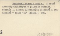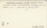 PAWŁOWSKI Bogumił 1925 a Zapiski florystyczne z Tatr. (Floristische Notizen aus der Tatra). II.