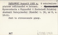 PAWŁOWSKI Bogumił 1926 a Z badań fotosocjologicznych w polskich Tatrach.