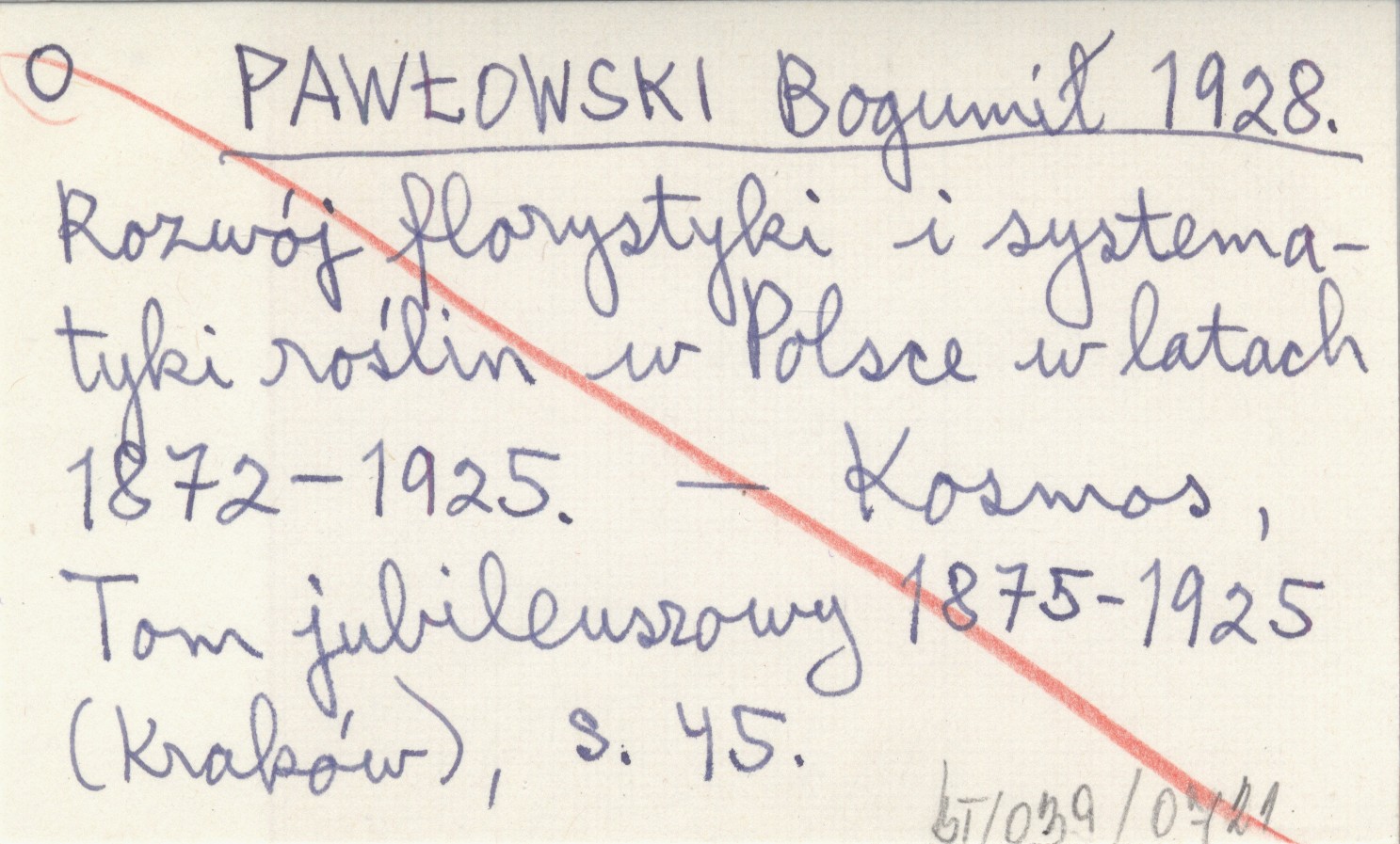 PAWŁOWSKI Bogumił 1928 Rozwój florystyki i systematyki roślin w Polsce w latach 1872-1925.