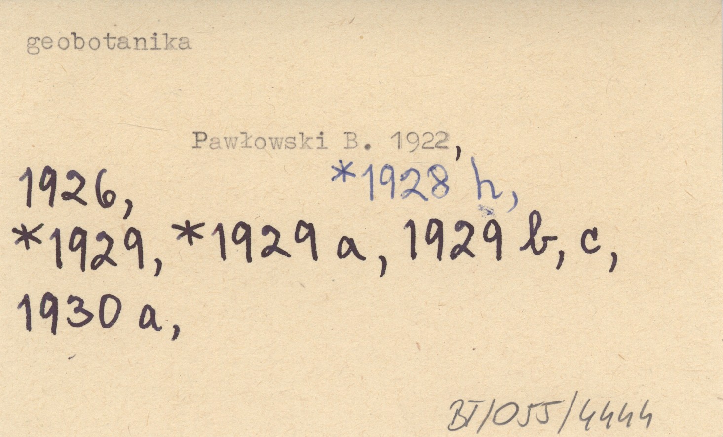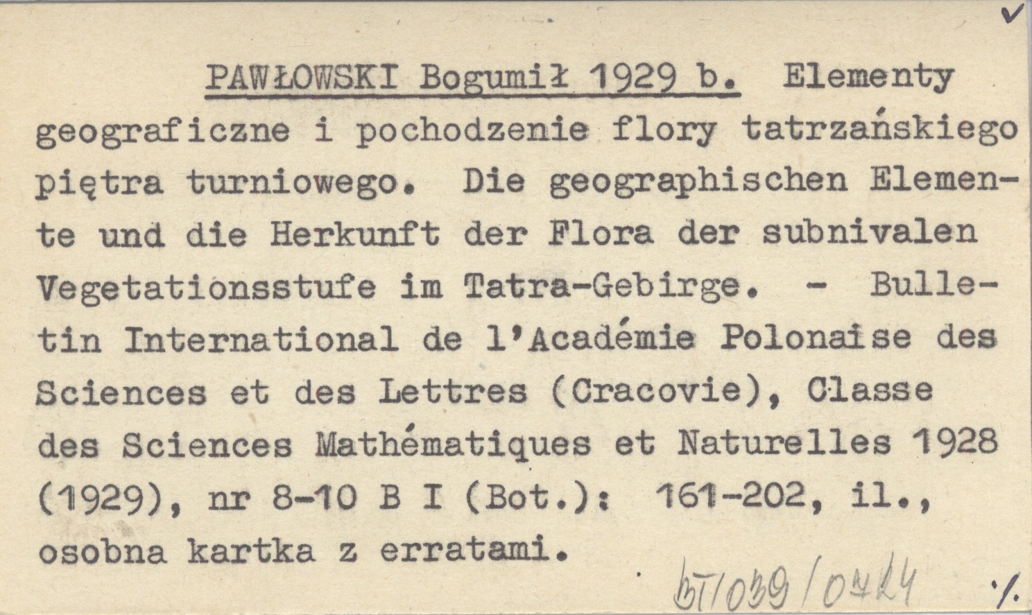 PAWŁOWSKI Bogumił 1929 b Elementy geograficzne i pochodzenie flory tatrzańskiego piętra turniowego. Die geographischen Elemente und die Herkunft der Flora der subnivalen Vegetationsstufe im Tatra-Gebirge.