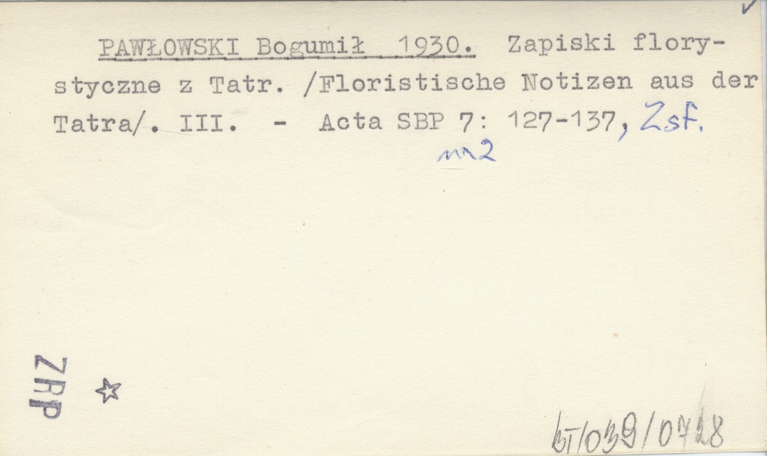 PAWŁOWSKI Bogumił 1930 Zapiski florystyczne z Tatr. (Floristische Notizen aus der Tatra). III.