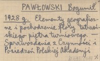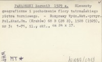PAWŁOWSKI Bogumił 1928 g Elementy geograficzne i pochodzenie flory tatrzańskiego piętra turniowego.