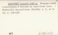 PAWŁOWSKI Bogumił 1929 e Program badań botanicznych w Tatrach na najbliższe lata.