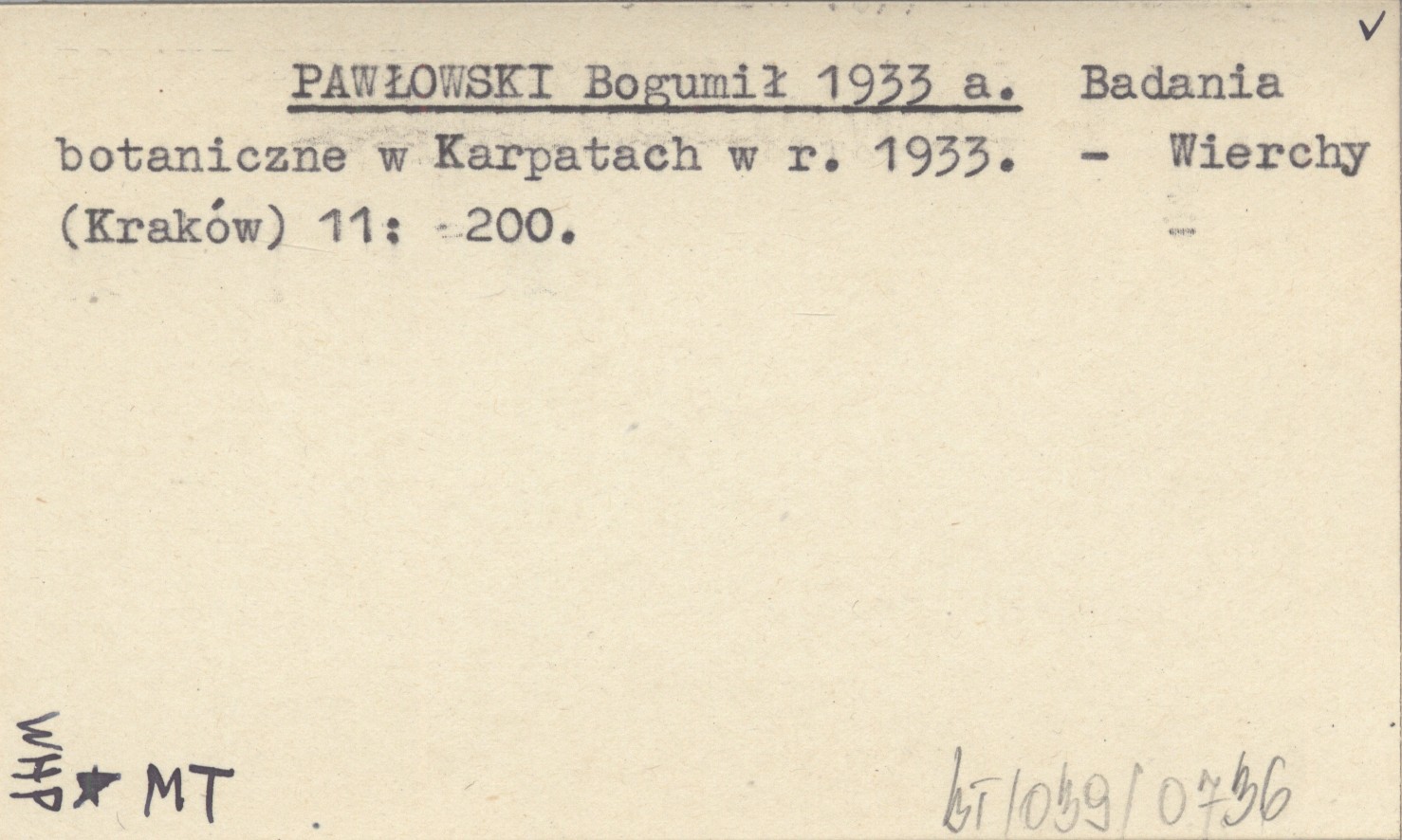 PAWŁOWSKI Bogumił 1933 a Badania botaniczne w Karpatach w r. 1933.