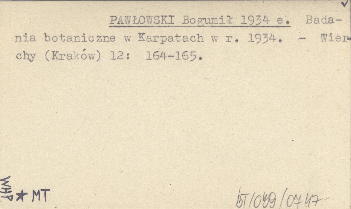 PAWŁOWSKI Bogumił 1934 e Badania botaniczne w Karpatach w r. 1934.