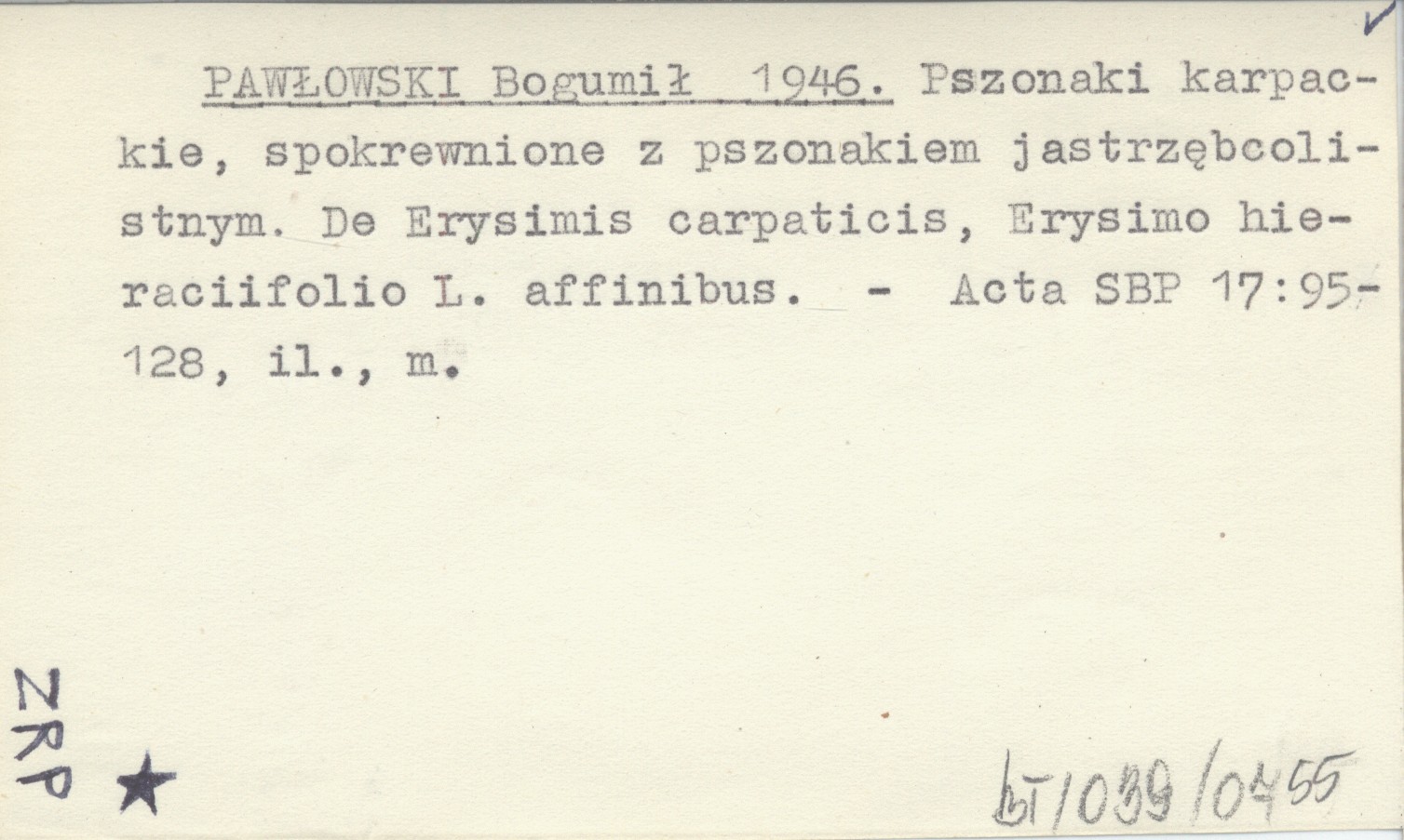 PAWŁOWSKI Bogumił 1946 Pszonaki karpackie, spokrewnione z pszonakiem jastrzębcolistnym. De Erysimis carpaticis, Erysimo hieraciifolio L. affinibus.