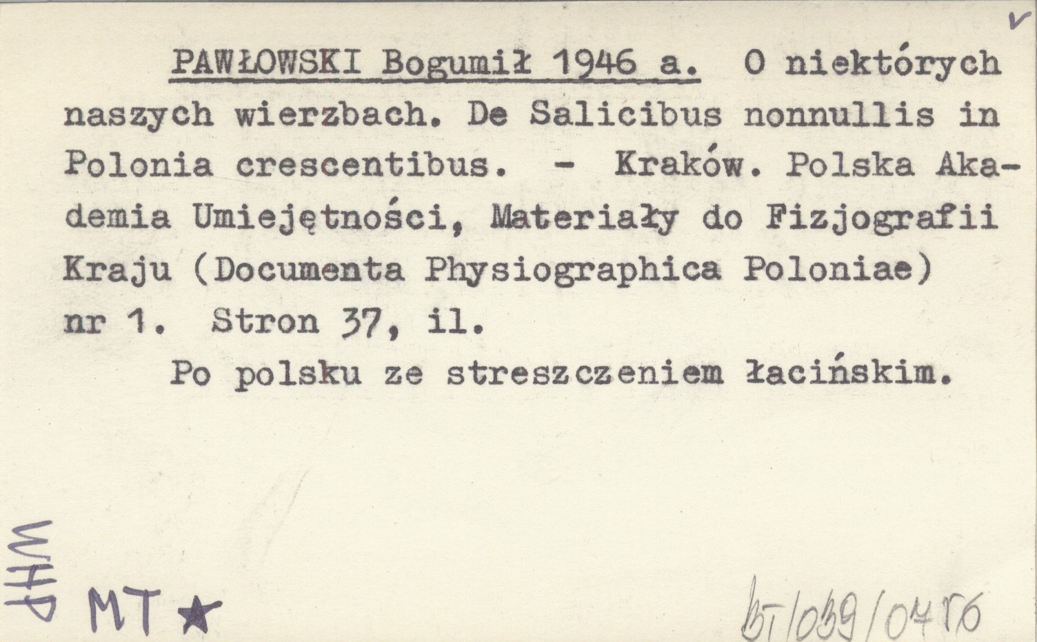PAWŁOWSKI Bogumił 1946 a O niektórych wierzbach. De Salicibus nonnullius in Polonia crescentibus.