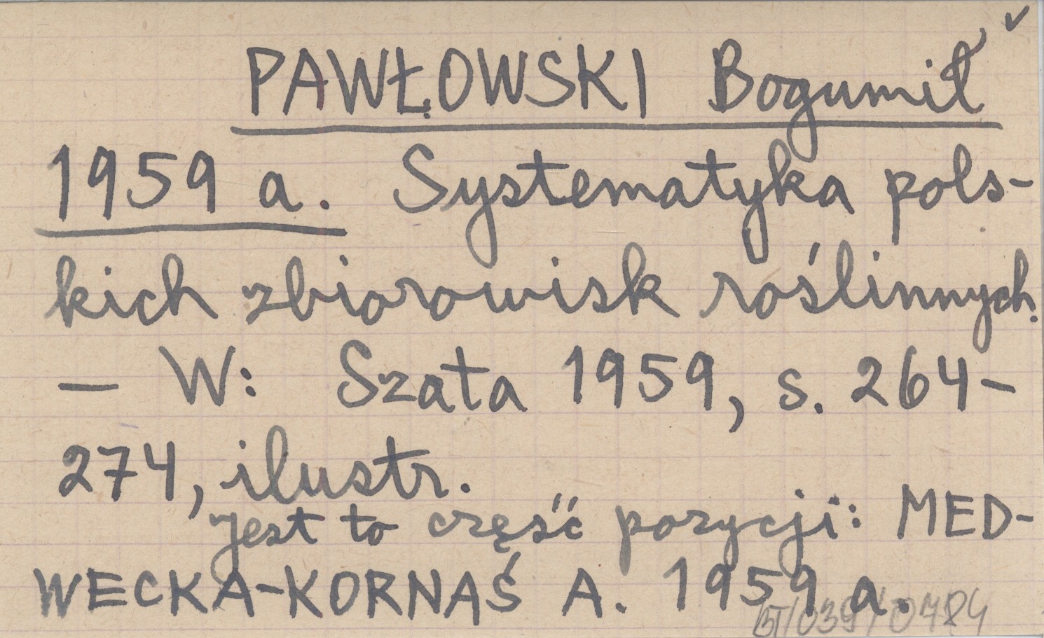 PAWŁOWSKI Bogumił 1959 a Systematyka polskich zbiorowisk roślinnych.