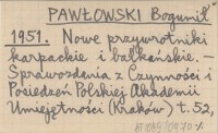 PAWŁOWSKI Bogumił 1951 Nowe przywrotniki karpackie i bałkańskie.