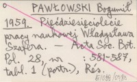 PAWŁOWSKI Bogumił 1956 c Dotychczasowe badania nad florą i roślinnością naczyniową Tatr i zadania w tej dziedzinie na przyszłość.