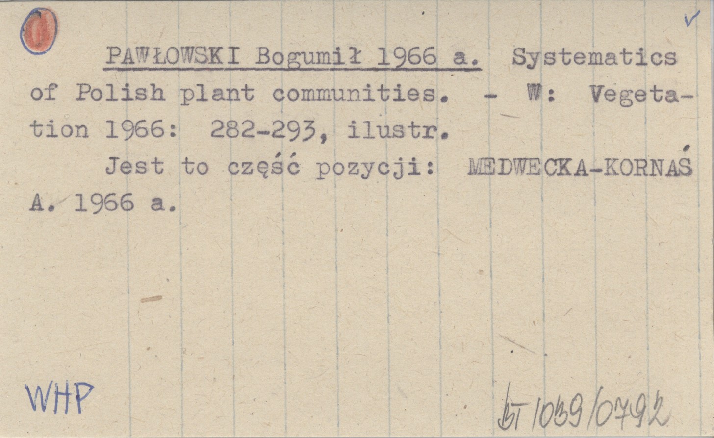 PAWŁOWSKI Bogumił 1966 a Systematics of Polish plant communities.