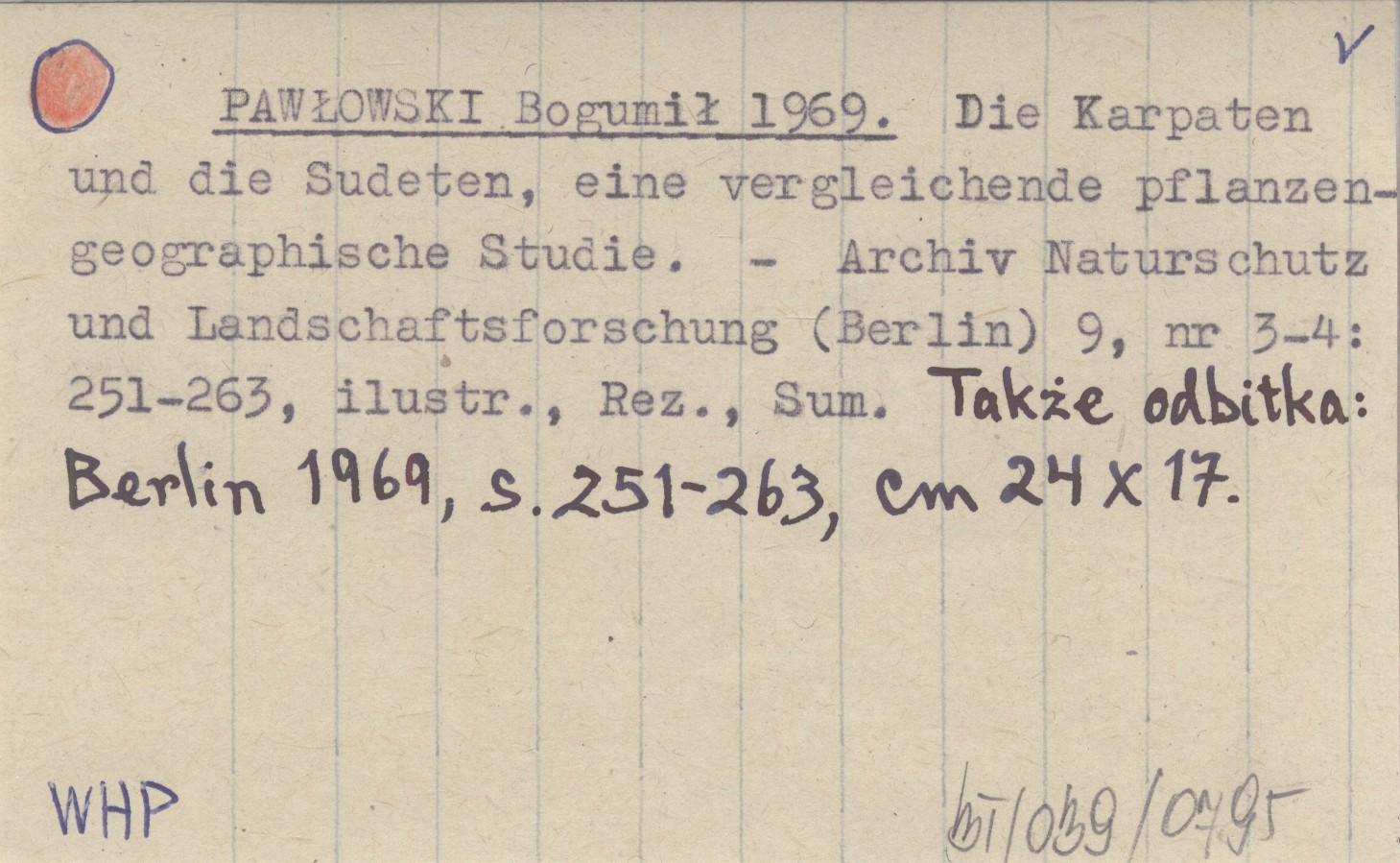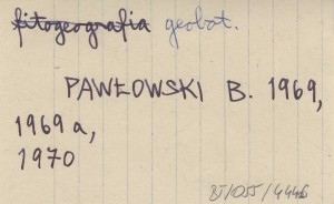 PAWŁOWSKI Bogumił 1969 Die Karpaten und die Sudeten, eine vergleichende pflanzengeographische Studie.