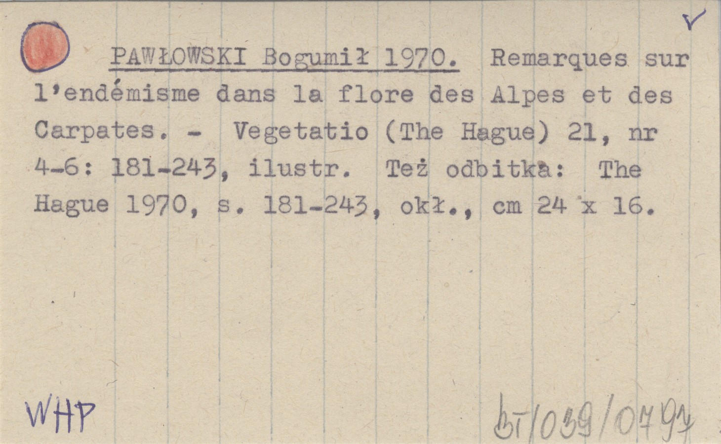 PAWŁOWSKI Bogumił 1970 Remarques sur l'endémisme dans la flore des Alpes et des Carpates.