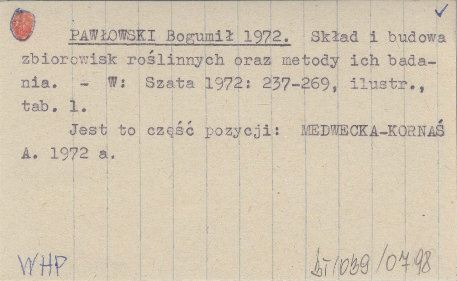 PAWŁOWSKI Bogumił 1972 Skład i budowa zbiorowisk roślinnych oraz metody ich badania.