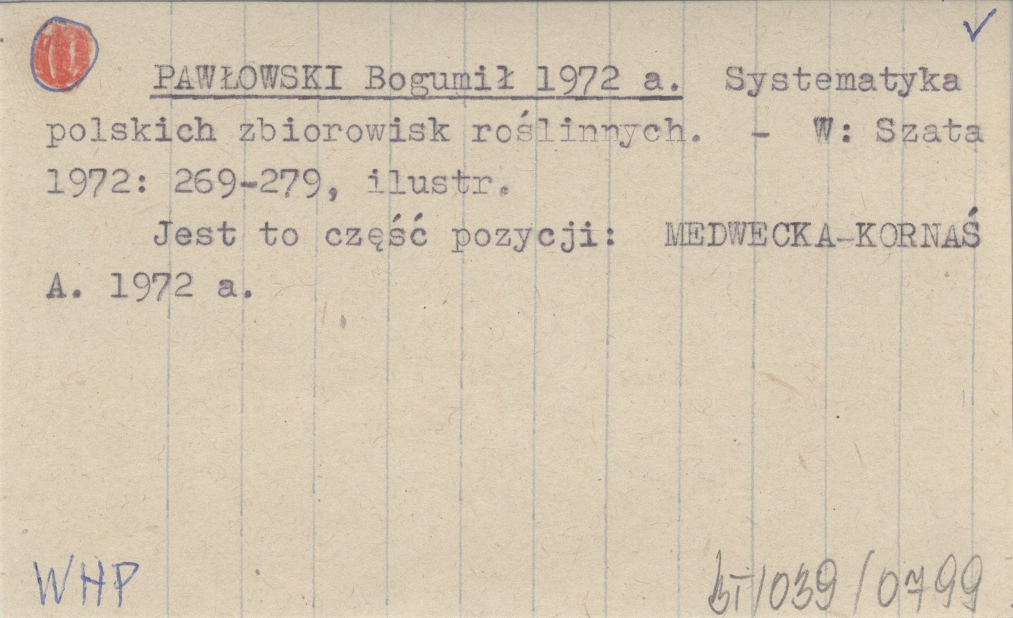 PAWŁOWSKI Bogumił 1972 a Systematyka polskich zbiorowisk roślinnych.