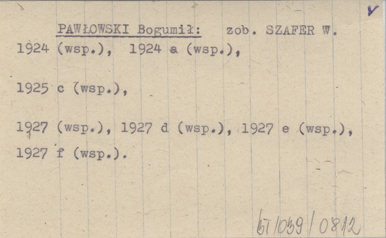 SZAFER W. 1924 (wsp.), 1924 a (wsp.), 1925 c (wsp.) SZAFER W. 1927 (wsp.), 1927 d (wsp.), 1927 e (wsp.), 1927 f (wsp.)