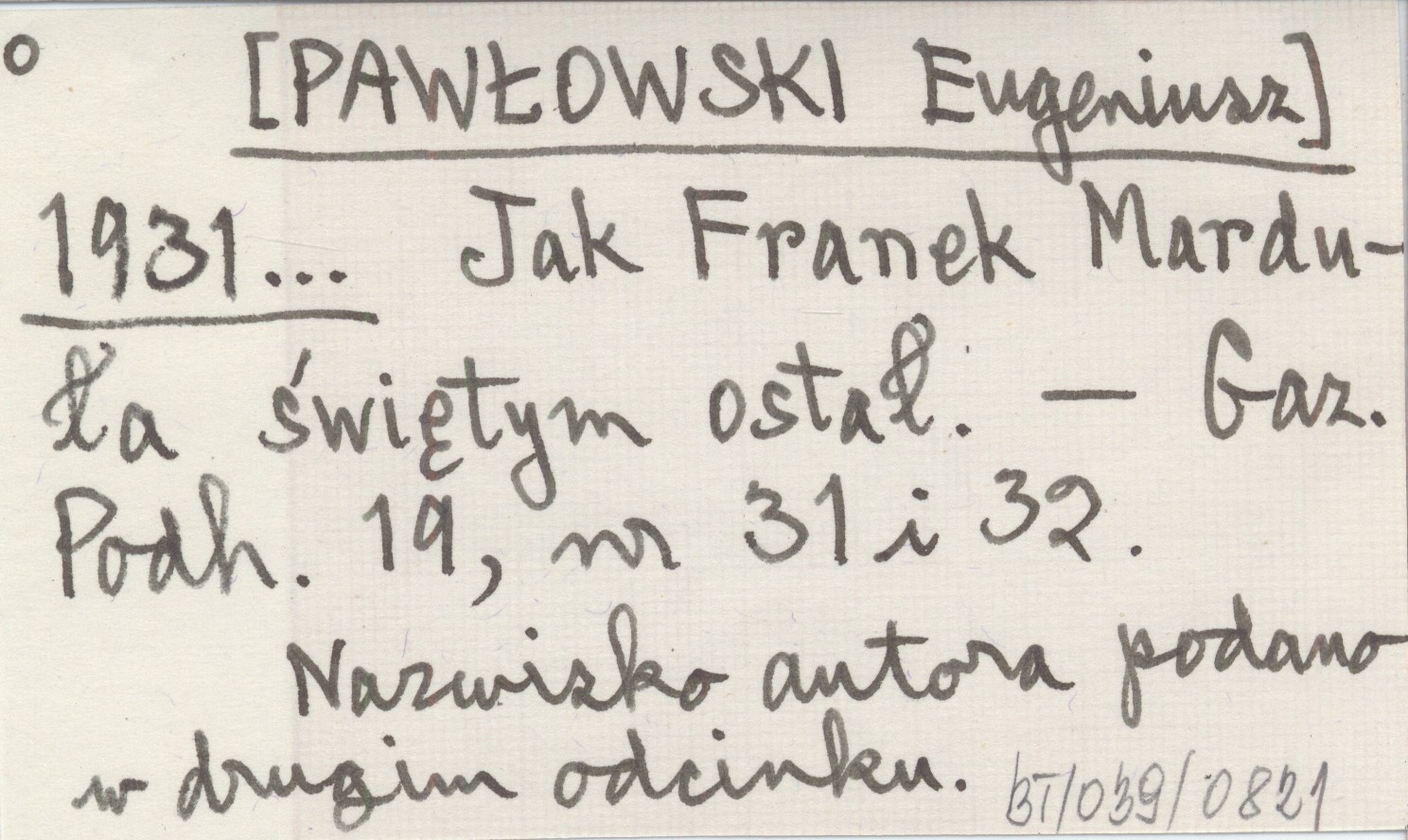 [PAWŁOWSKI Eugeniusz] 1931... Jak Franek Marduła świętym ostał.