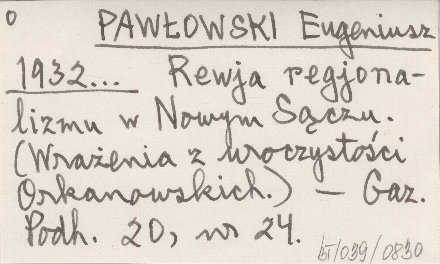 PAWŁOWSKI Eugeniusz 1932... Rewja regjonalizmu w Nowym Sączu. (Wrażenia z uroczystości Orkanowskich).