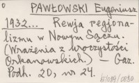 PAWŁOWSKI Eugeniusz 1932... Rewja regjonalizmu w Nowym Sączu. (Wrażenia z uroczystości Orkanowskich).