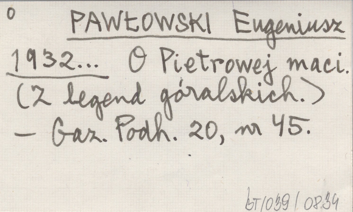 PAWŁOWSKI Eugeniusz 1932... O Pietrowej maci. (Z legend góralskich).