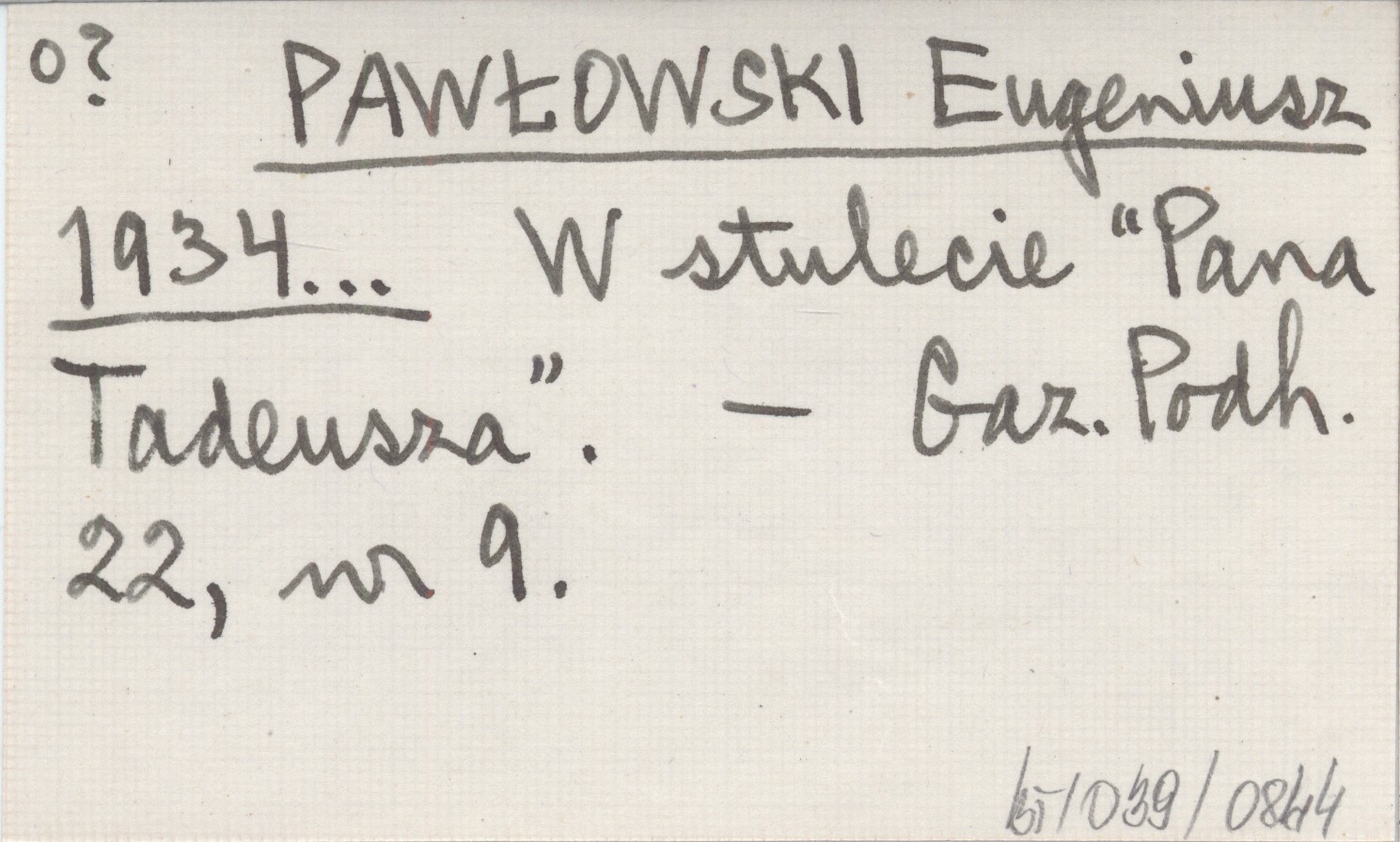 PAWŁOWSKI Eugeniusz 1934... W stulecie "Pana Tadeusza".