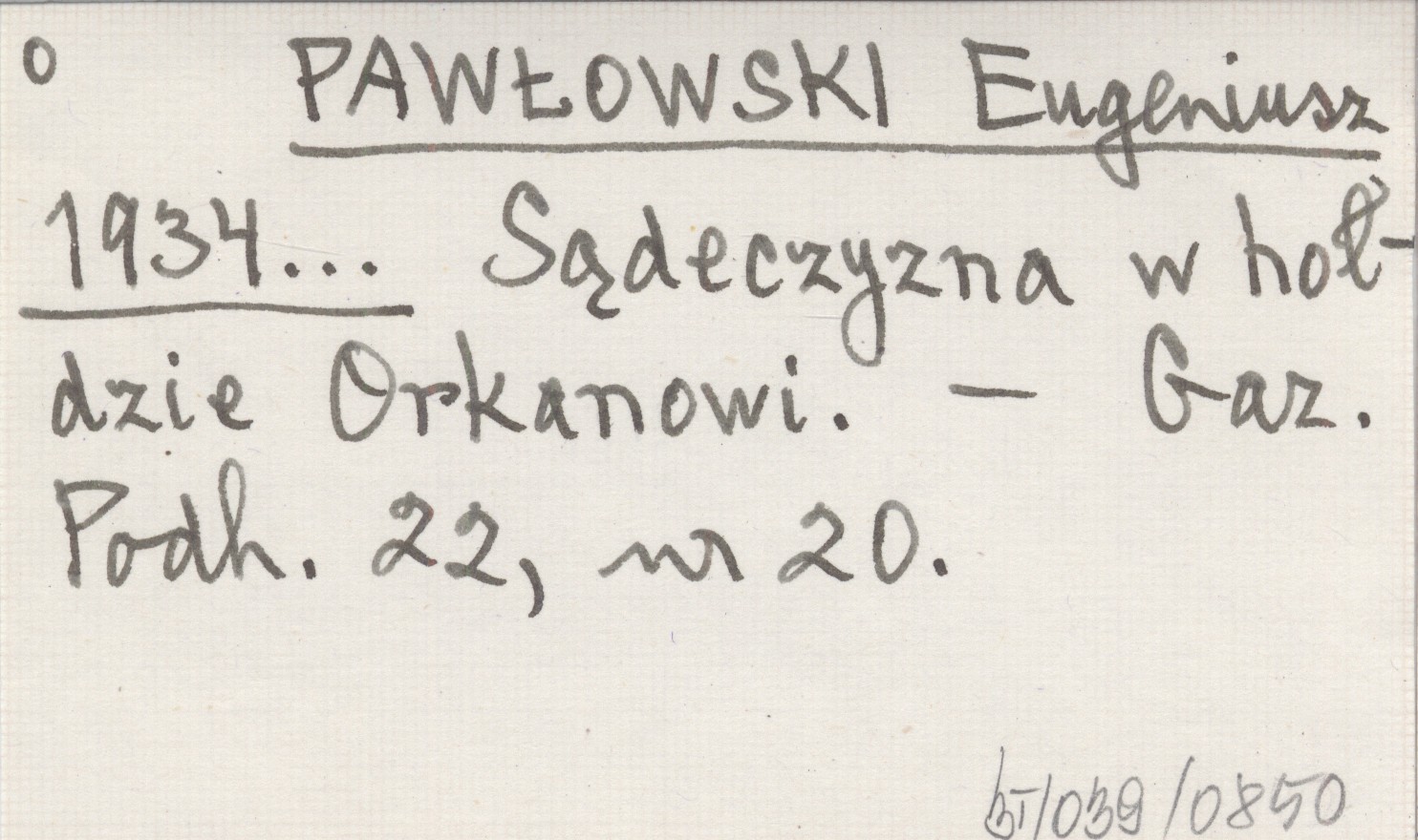 PAWŁOWSKI Eugeniusz 1934... Sądeczyzna w hołdzie Orkanowi.