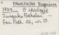 PAWŁOWSKI Eugeniusz 1934... O ideologję Związku Podhalan.