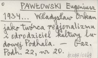 PAWŁOWSKI Eugeniusz 1934... Władysław Orkan jako twórca regjonalizmu i odrodziciel kultury ludowej Podhala.