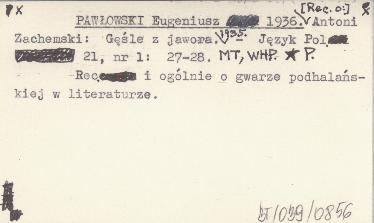 Język Polski, 21, nr 1: 27-28. Recenzja i ogólnie o gwarze podhalańskiej w literaturze.