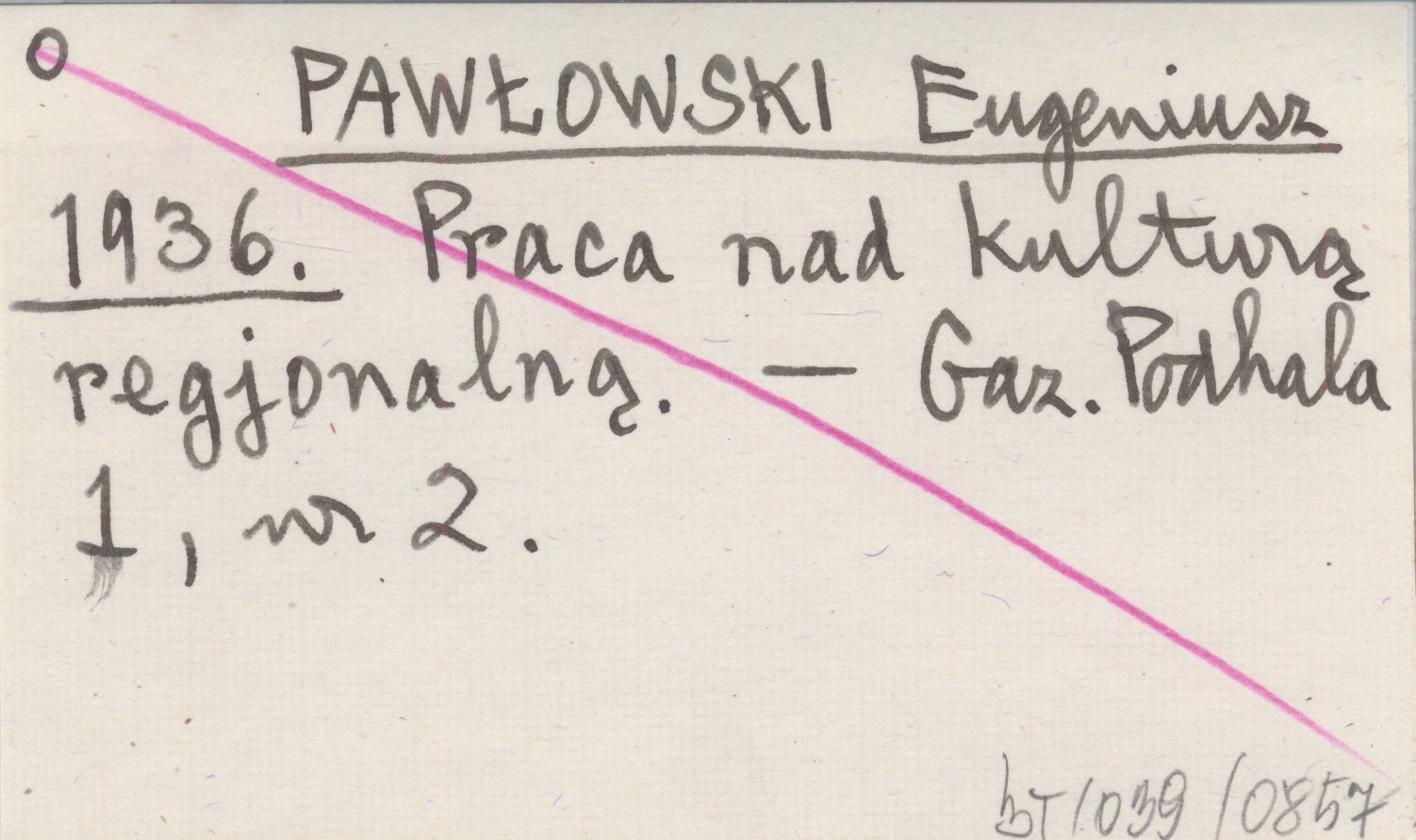 PAWŁOWSKI Eugeniusz 1936 Praca nad kulturą regjonalną.