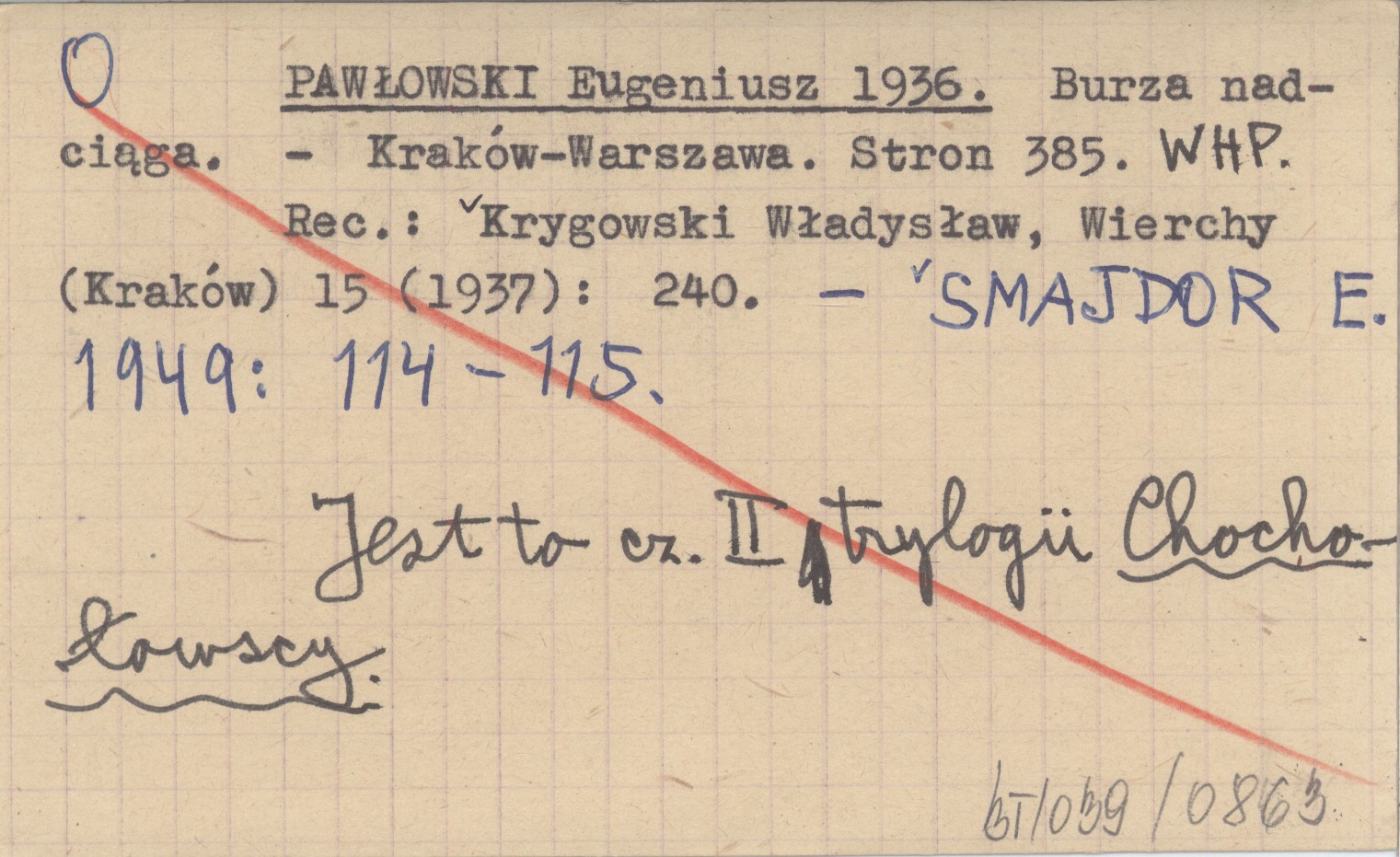 Kraków ; Warszawa ; , 385 s. Jest to cz. II trylogii Chochołowscy. REC: KRYGOWSKI Władysław, Wierchy (Kraków) 15 (1937): 240 ; SMAJDOR E. 1949: 114-115 ;