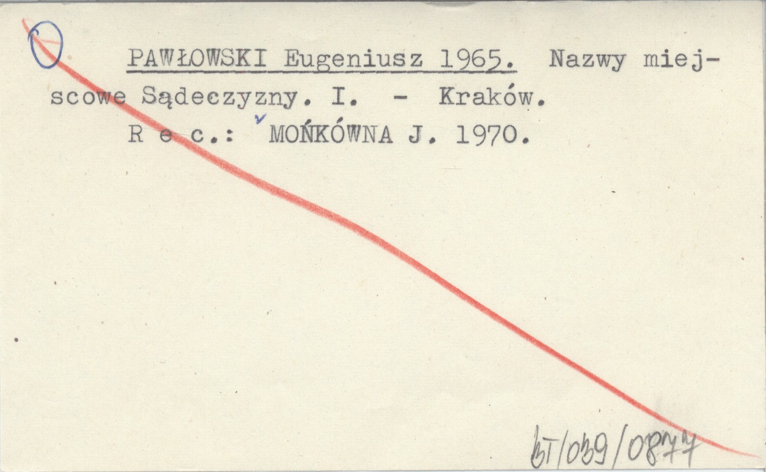 PAWŁOWSKI Eugeniusz 1965 Nazwy miejscowe Sądeczyzny. Tom pierwszy: Ogólna charakterystyka nazewnictwa miejscowego Sądeczyzny.