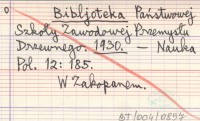 Bibljoteka Państwowej Szkoły Zawodowej Przemysłu Drzewnego. 1930